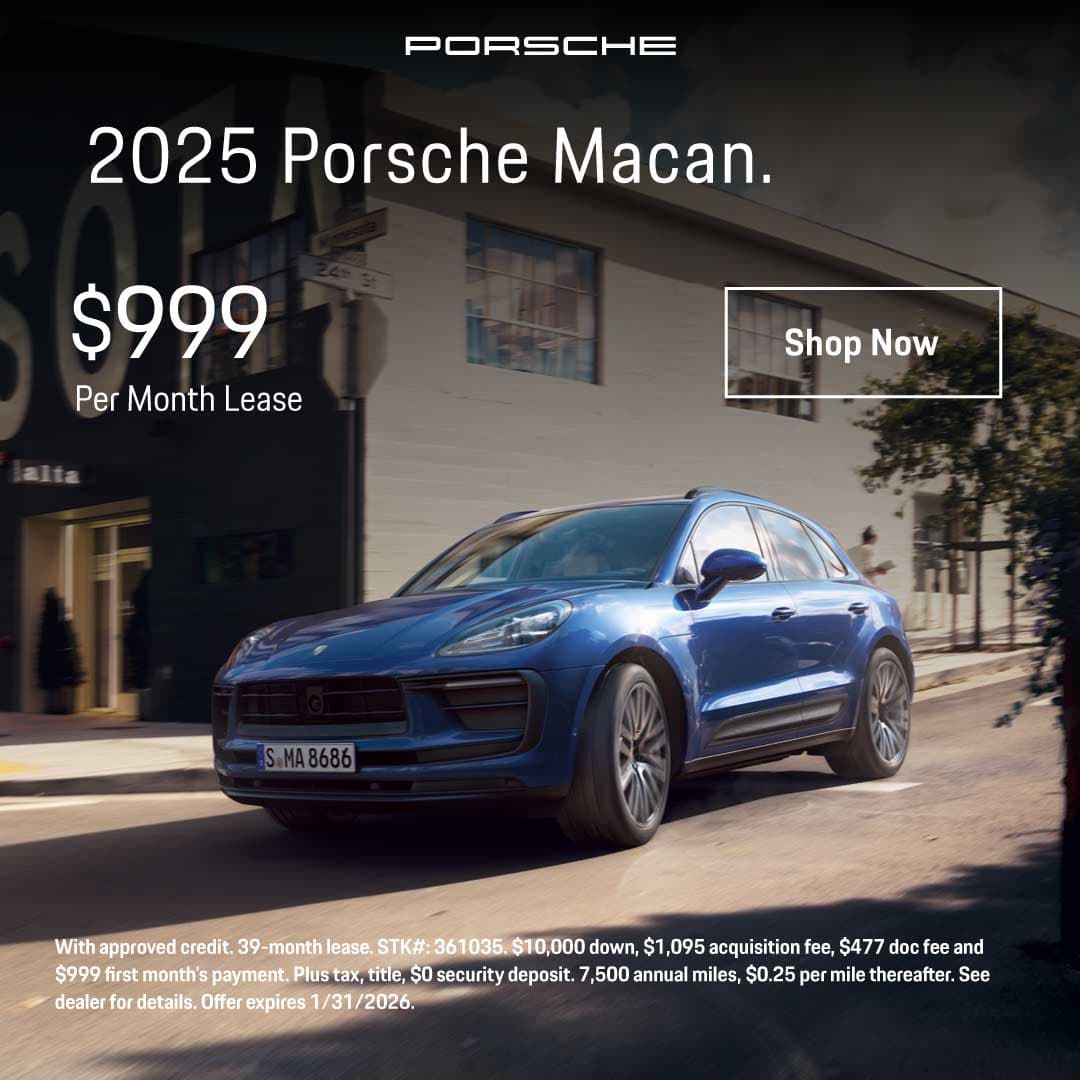 Interested in leasing a Porsche Macan SUV? Porsche Warrington in Warrington, PA is excited to offer competitive lease programs for new Porsche Macan models. We update our lease offers on a monthly basis, so if you don't see what you are looking for, be sure to check back.